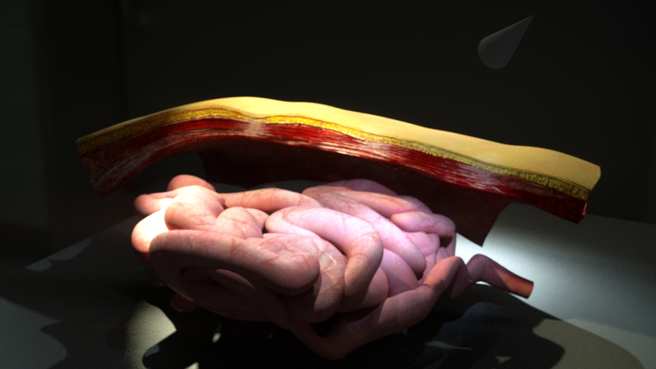 Here is an example of the scene rendered via the Maya Plug-in. The anatomy is a decimated mesh (13 mil tri's with texture - No displacement).