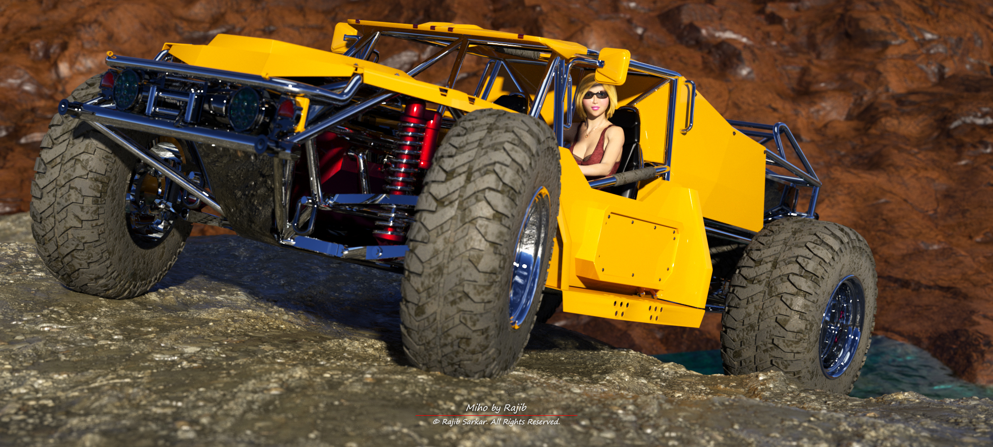 Sharing another 2 of my renders. Rendered using Daylight with skymap set. Terrain materials are from 'Real Displacement Textures'. Mud / dirt on the wheels are done using dirt and noise nodes mixed with the original clean tire diffuse material.