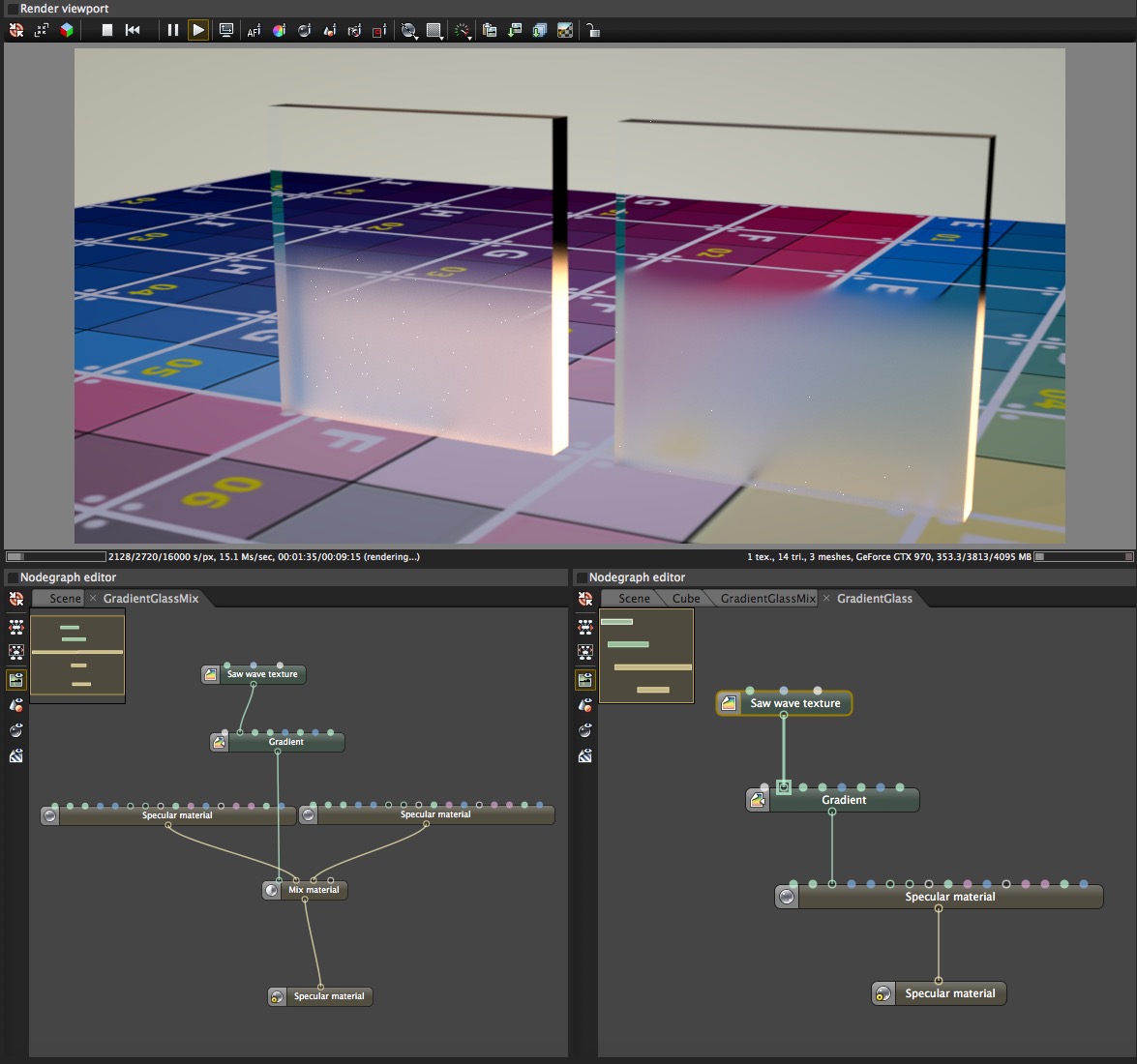 Here is an example scene with a mix version and a singol material version by using the gradient node in the roughness only: