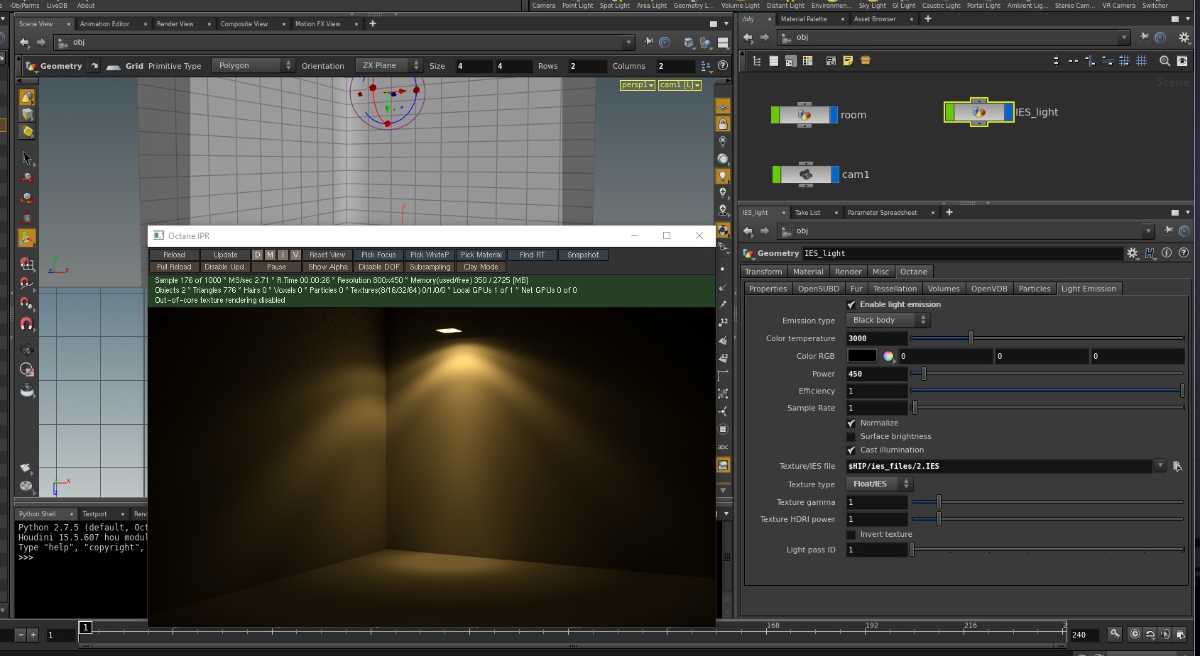 houdini octane render of IES file on plane.