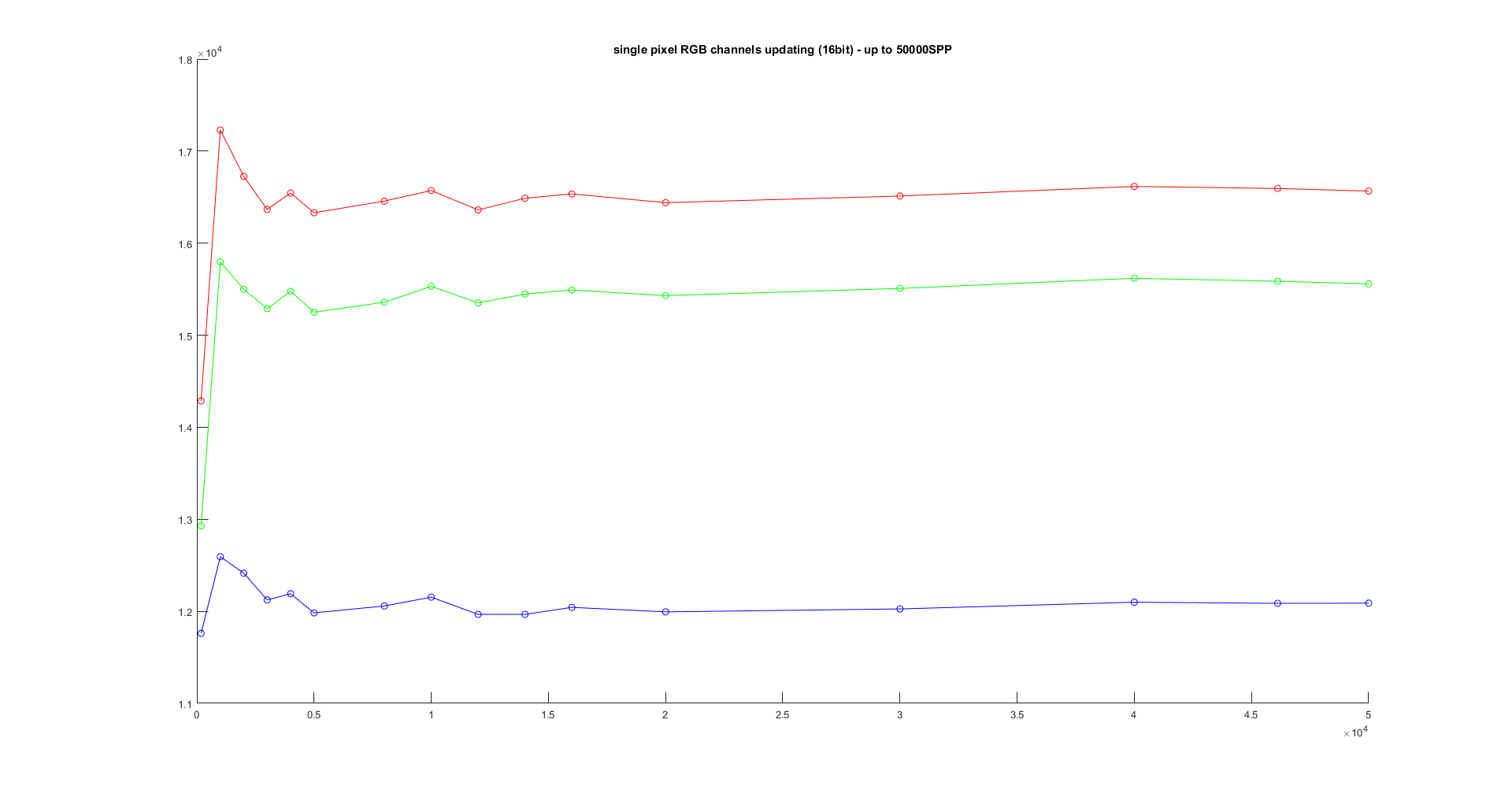 I have also checked if, by knowing the updating trend of lower SPP values we can extrapolate to final converged values. my conclusion is that it can not be done due to the way the engine update the samples leading to RGB values jumping around without clear trend.
