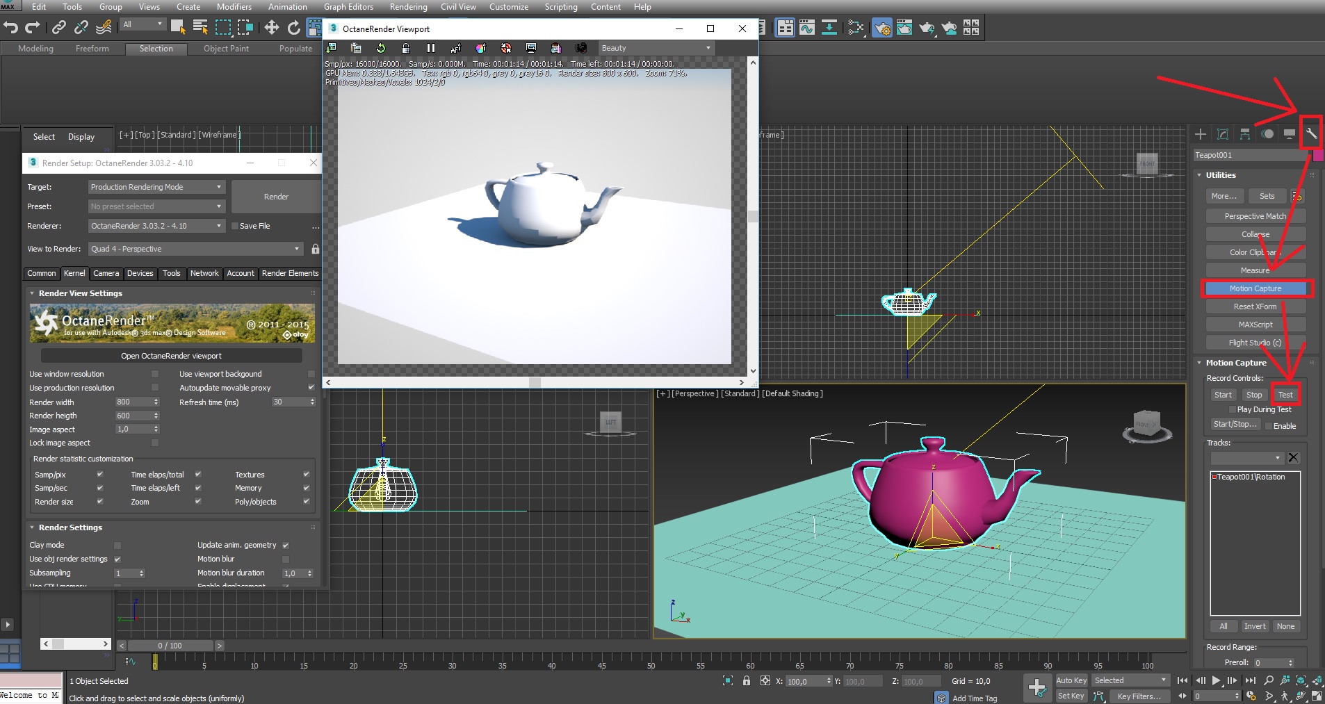 Open Octane viewport then go to utilities (on the left) -> motion capture -> test.