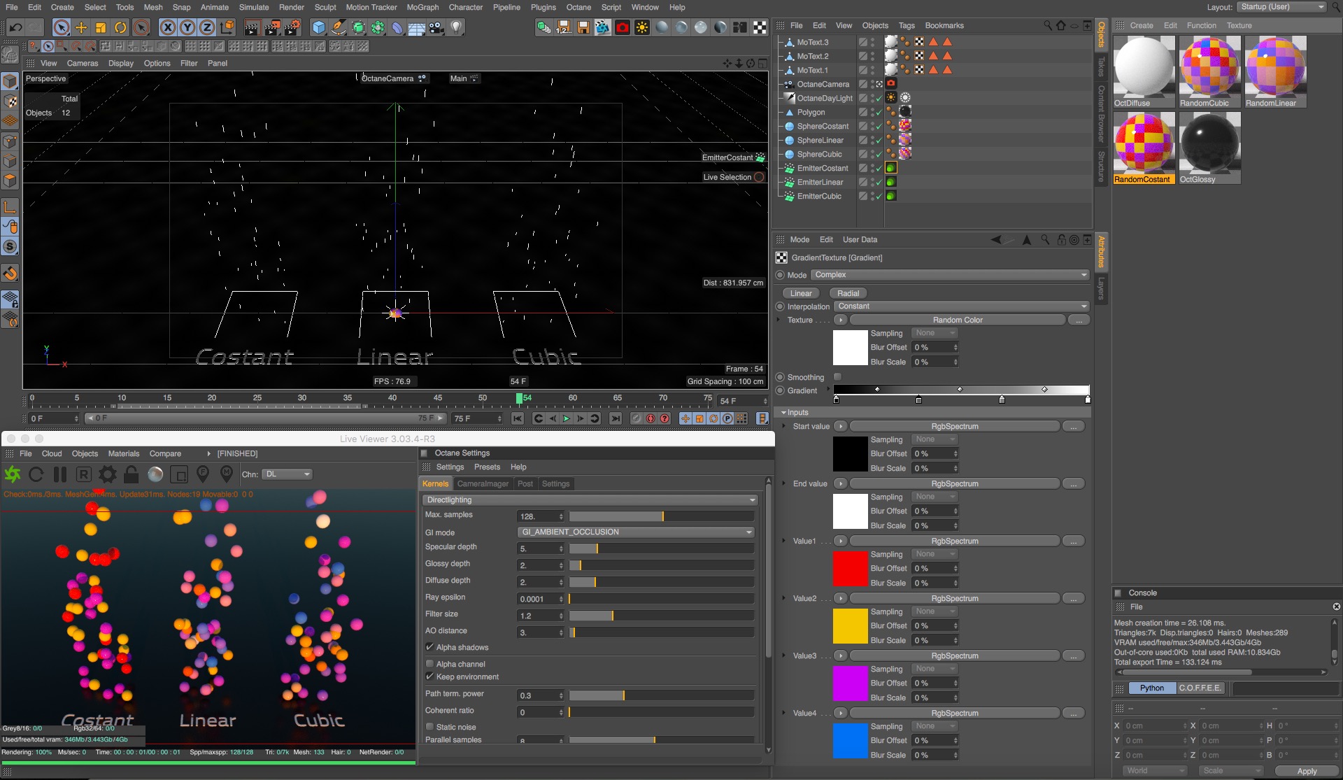 Octane 3 / C4D R17 / Win 7 64 SP 1 / Dual GTX Titan X (Driver 368.69) / Dual Xeon E5-2680 v3 @ 2.50GHz / 64GB RAM