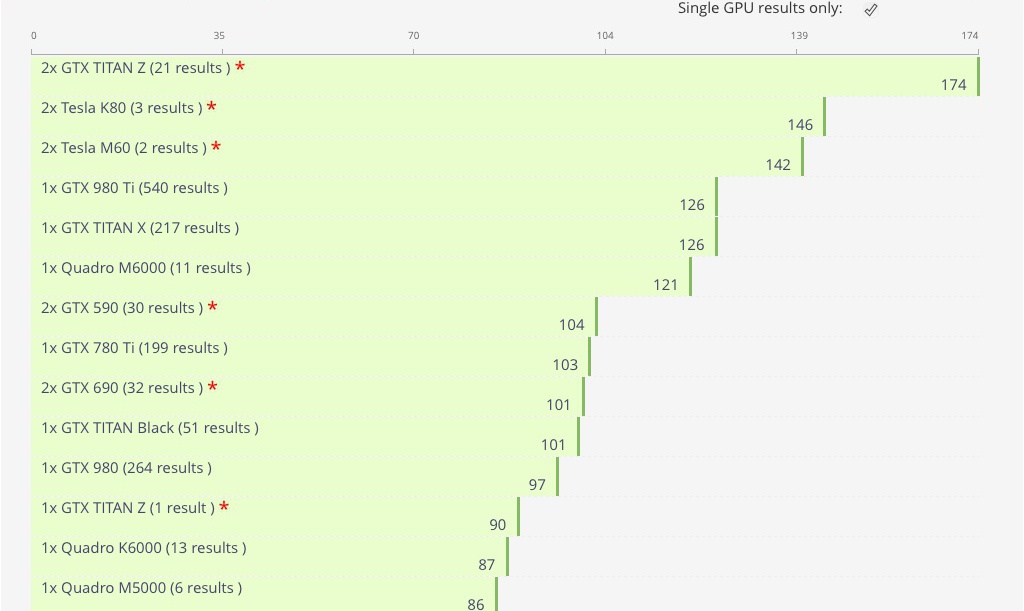For pure speed, if power and ram are not a concern....a 590 is still very hard to beat...outperforming the 980, titanZ and 780ti....and they can be had for less than $100