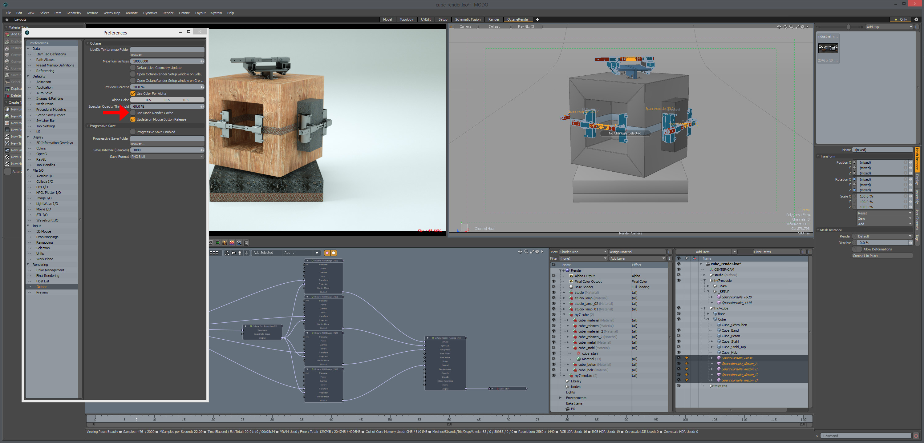 Which Modo release are you on pls?Having an octane render set to use modo render cache settings, and in the same time having an octane over ride, any change in the mesh will make modo crash.