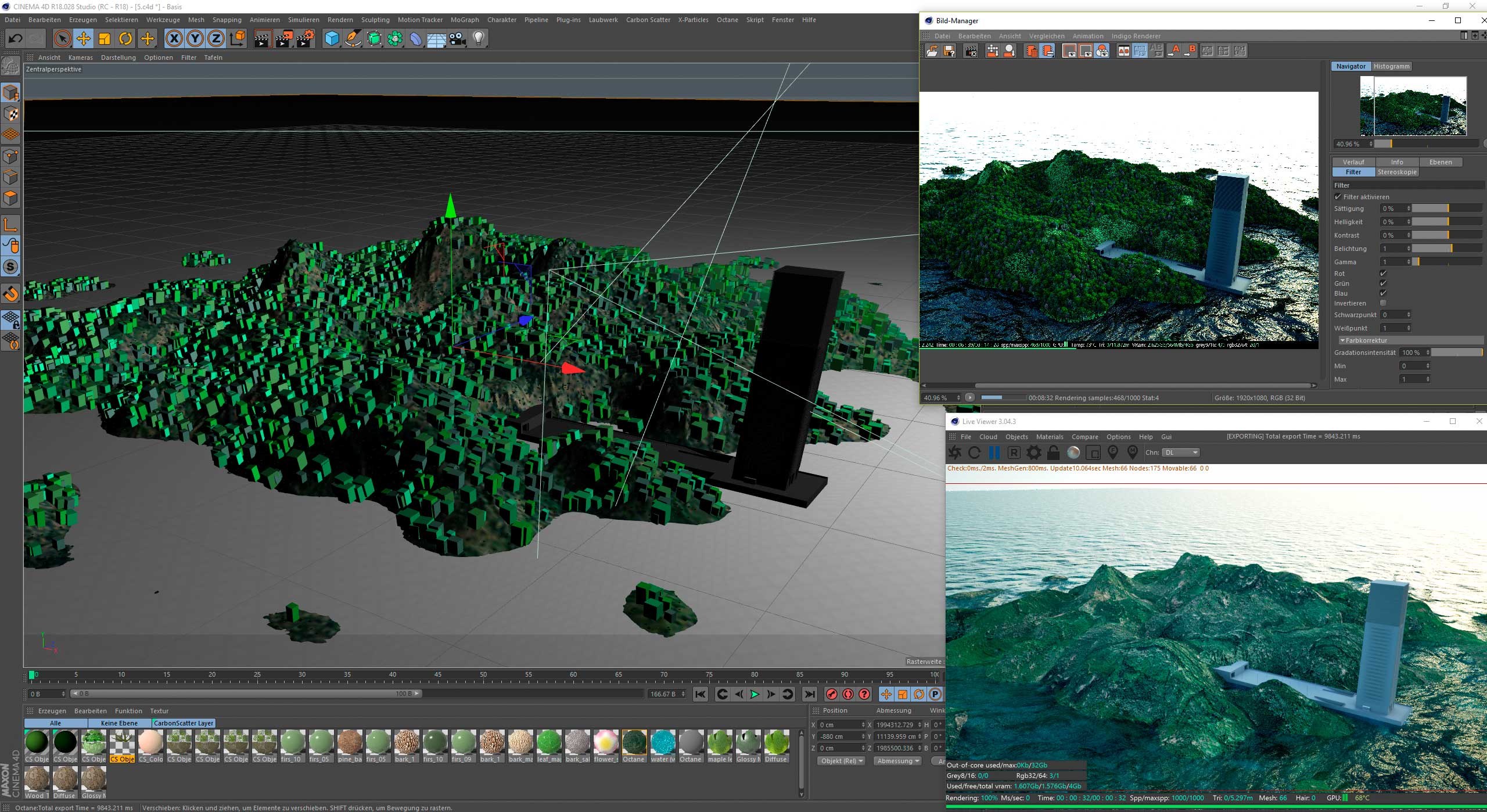 fireball wrote: I have got the same Problem, the LV does not show the Instances from Carbon Scatter. The Renderwindow of Cinema renders them with Octane as a Renderer. Using Geometry for 1000000Instaces of Grass will make Cinema 4d Viewport useless.