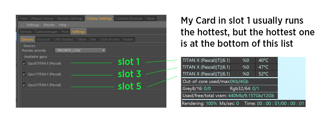 But then in the octane viewport that shows the temp is bottom to top. I say this because my gpu in slot 1 usually runs the hottest and its at the bottom of the list.