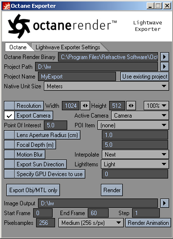 • "Octane OBJ Export" is written by me and windows only. For Lightwave 9 or later.