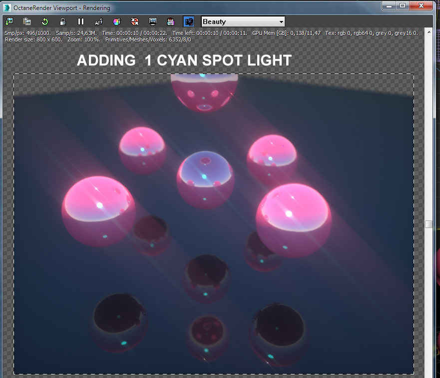using this method, I have twice rendered the animation ... that would take control of the light in the reflection