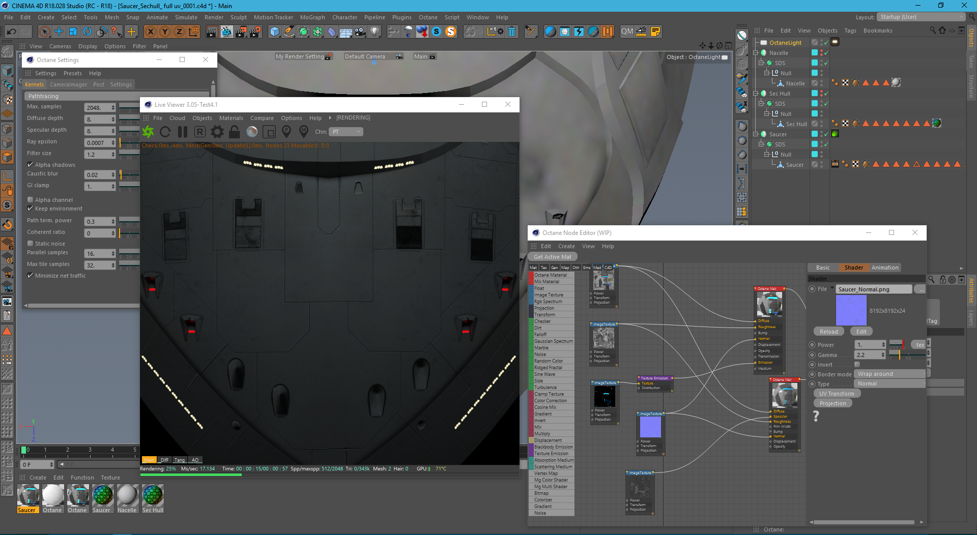 Tech stuff: Octane 3.05-test 4.1 ; cinema 4d r18.028 ; Video card: Gf 980Ti ; textures size 8k (all those render good and fast except normal maps in the mirrored Uv's)