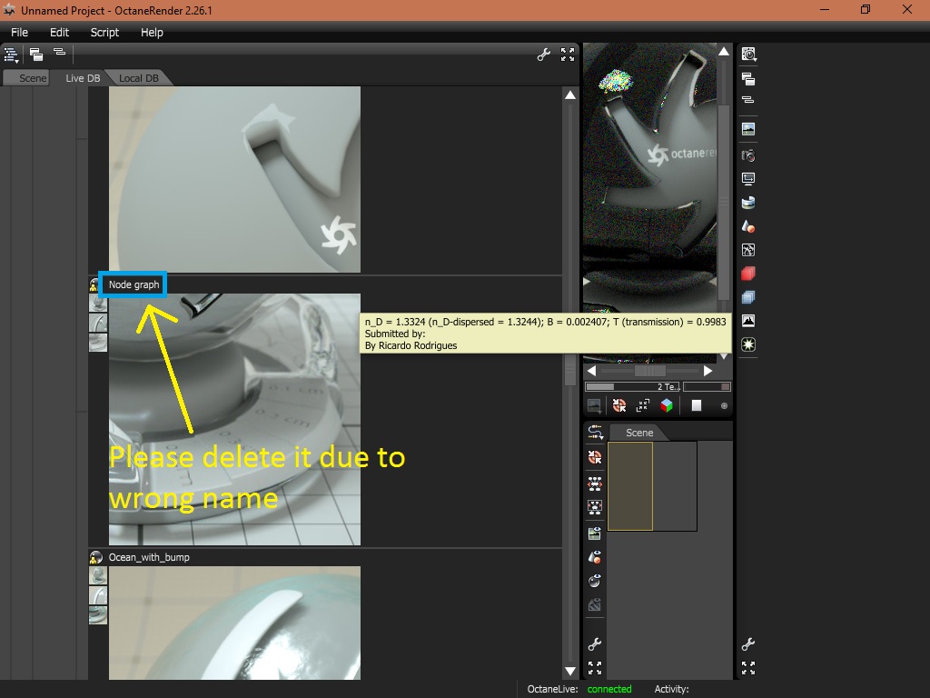 Please delete my material (locate material/organic/liquids) in LiveDB because "node graph" (water at 25ºC) is wrong name.