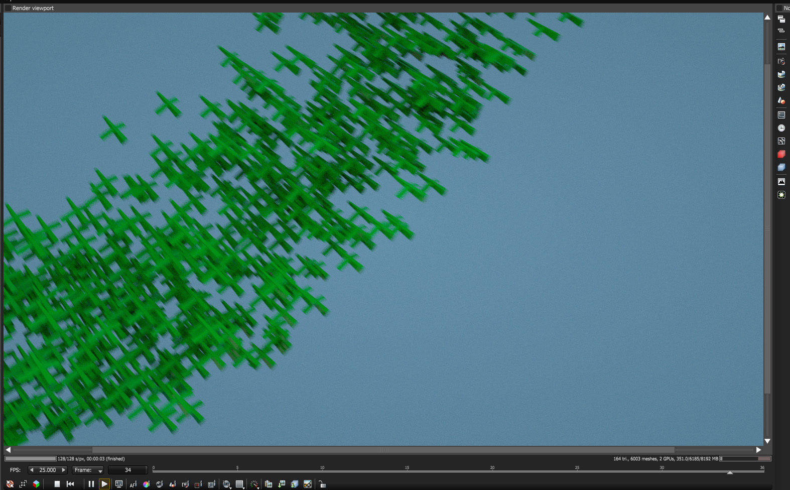 The first flock seems to have sensible motion blur, but the second flock is just crazy. Huge straight motion streaks across the screen to the point where they become almost invisible. At this point both generators are set to "create render instance."