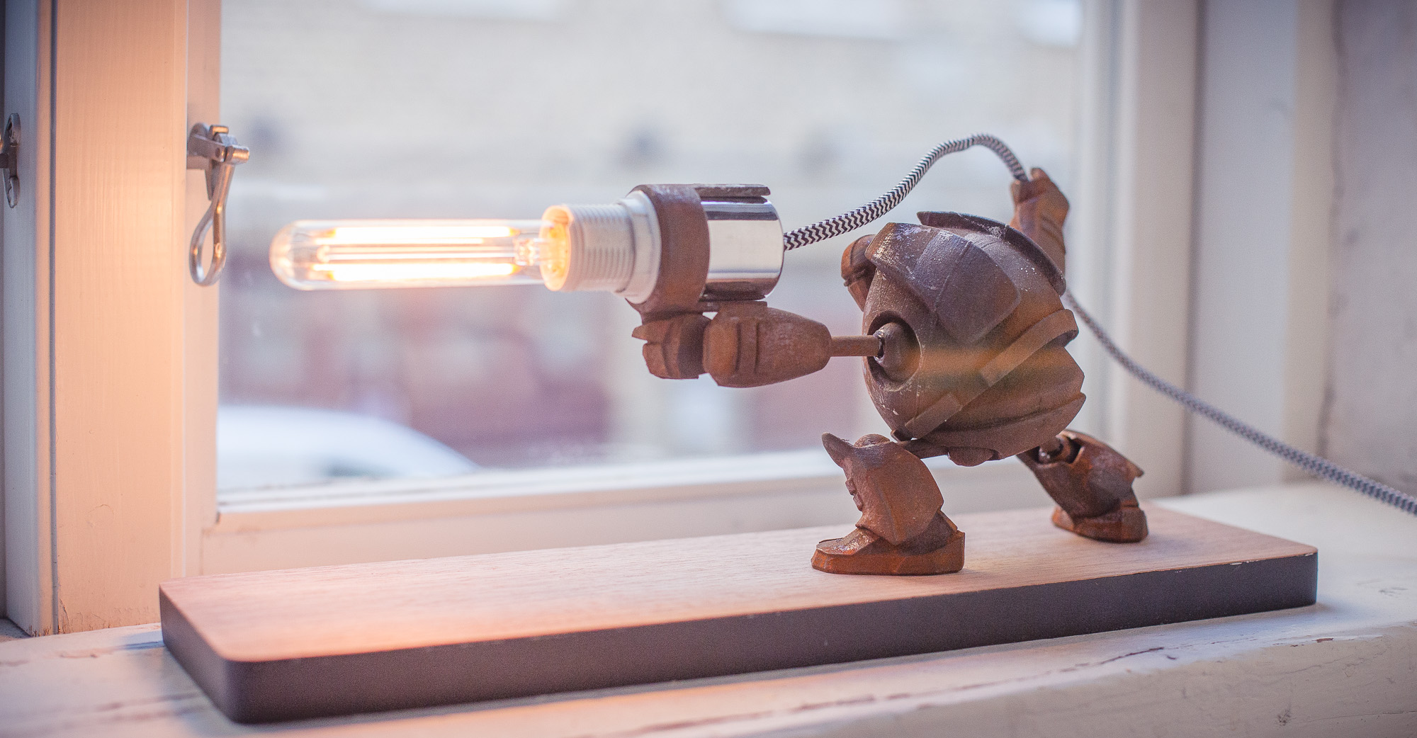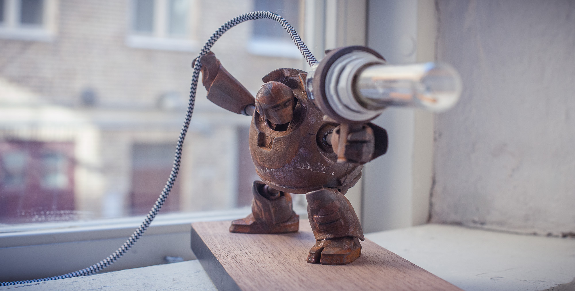 the printed parts will be the robot. hopefully i can print it with a iron filament so i can get the rusted look.