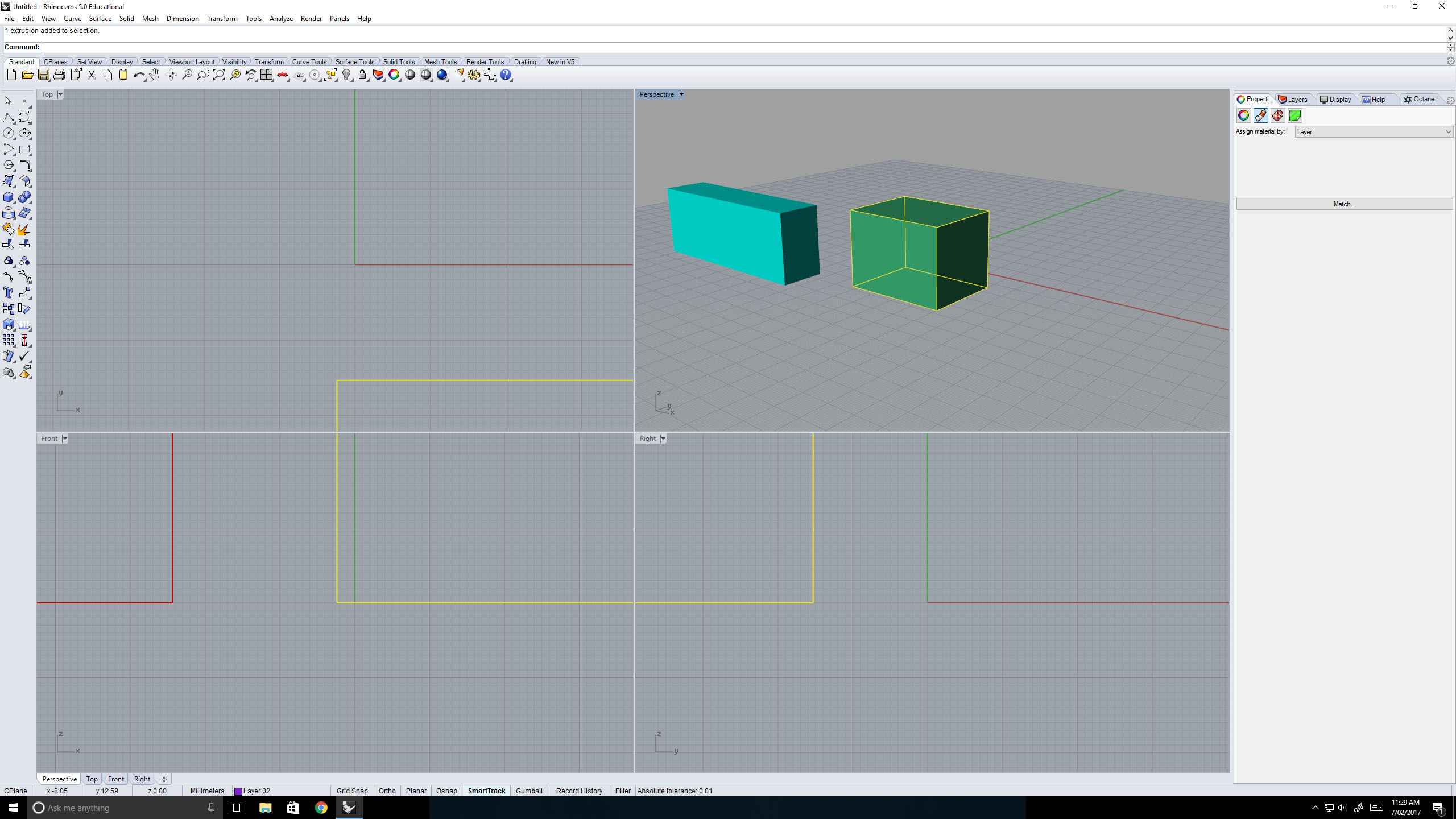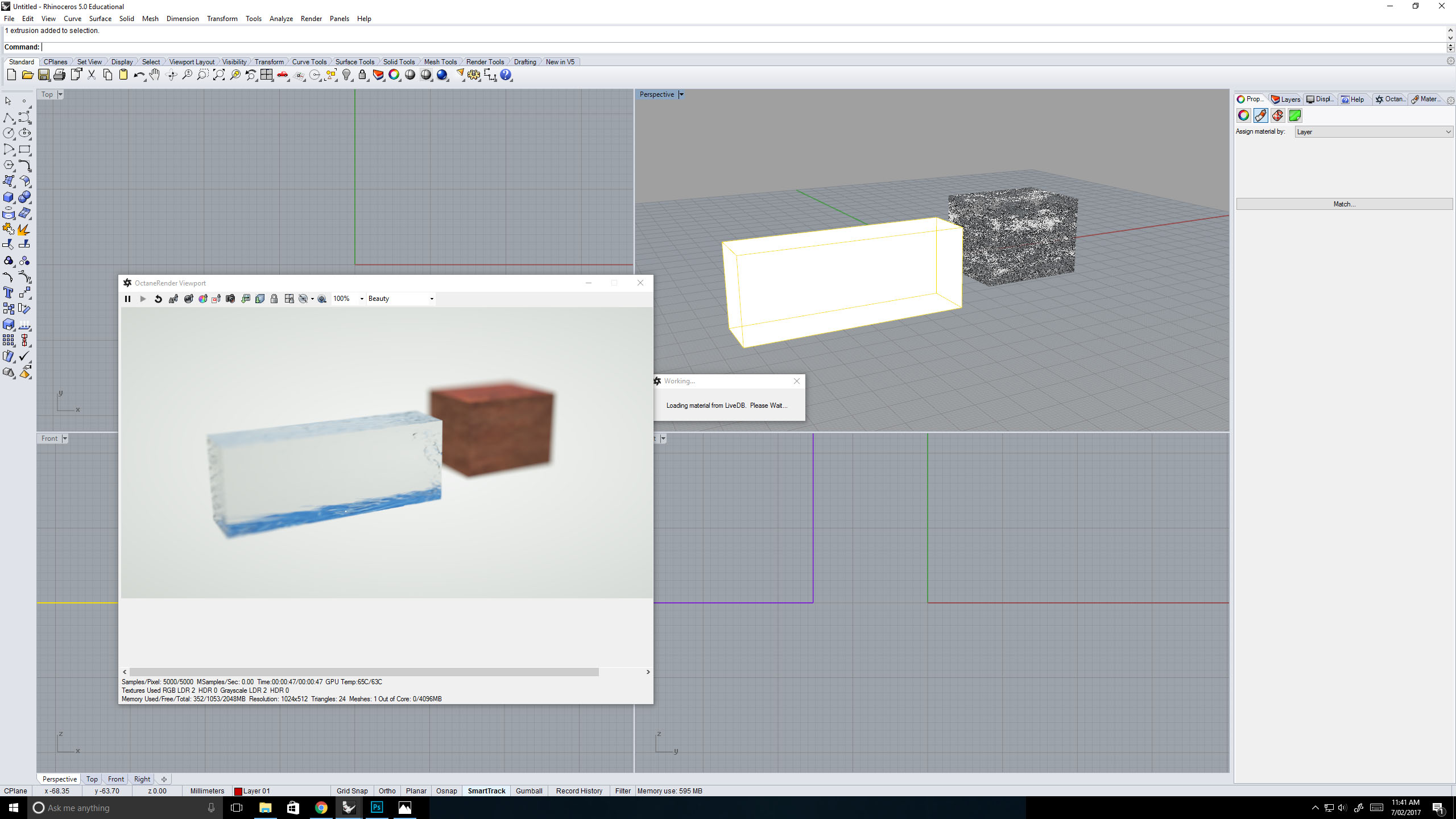 I suspect you have the material assignment by Parent rather than Object. As per the manual link posted above...."IMPORTANT: The OctaneRender plugin requires Rhino geometry items have materials assigned By Layer or By Object. Assigning materials By Parent may give unexpected results."I get nothing if i go to the Rhino object properties button and select my object. if i look onthe rainbow donut it tell me its an extrusion etc, but if i select the materials paint tube button there is nothing.