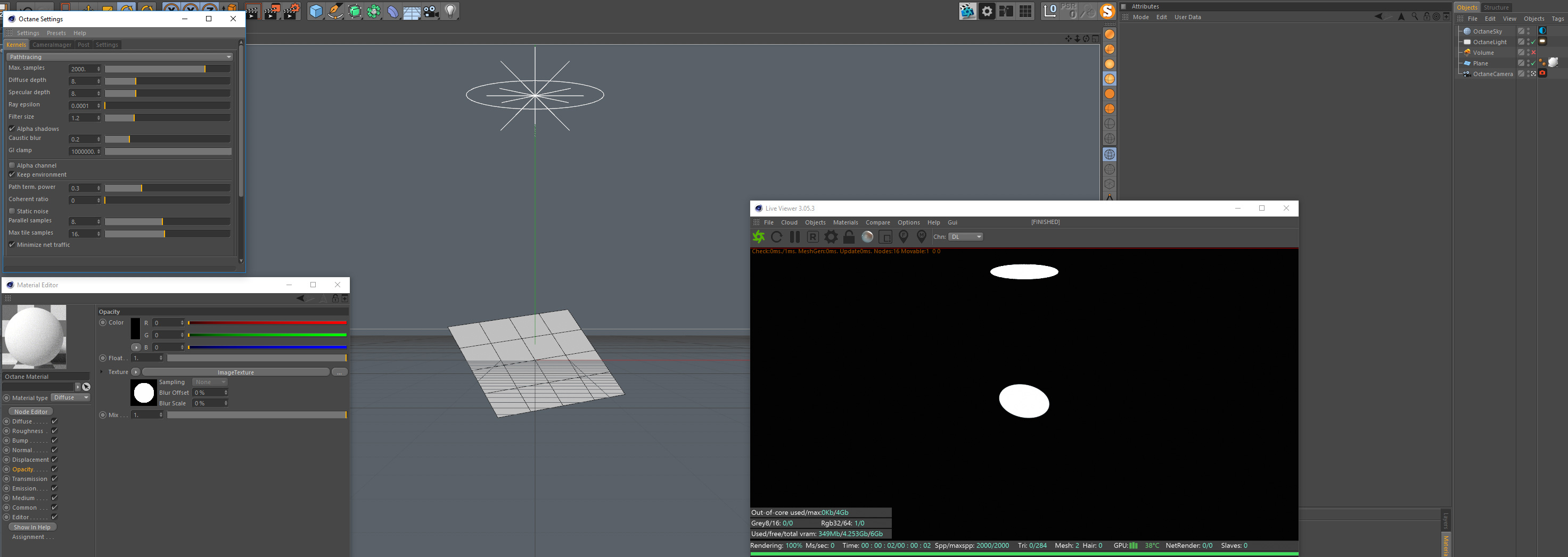 Attached is the very simplified version of the problem, where you can still see 100% transparent plane inside volume. I've tried pretty much every option there is to fix this but can't find a solution.