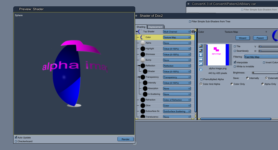 As an Alpha image, it seems that the Alpha function should be supported independent of the Alpha Channel, per the attached image of an Alpha Image in the native Carrara shader.