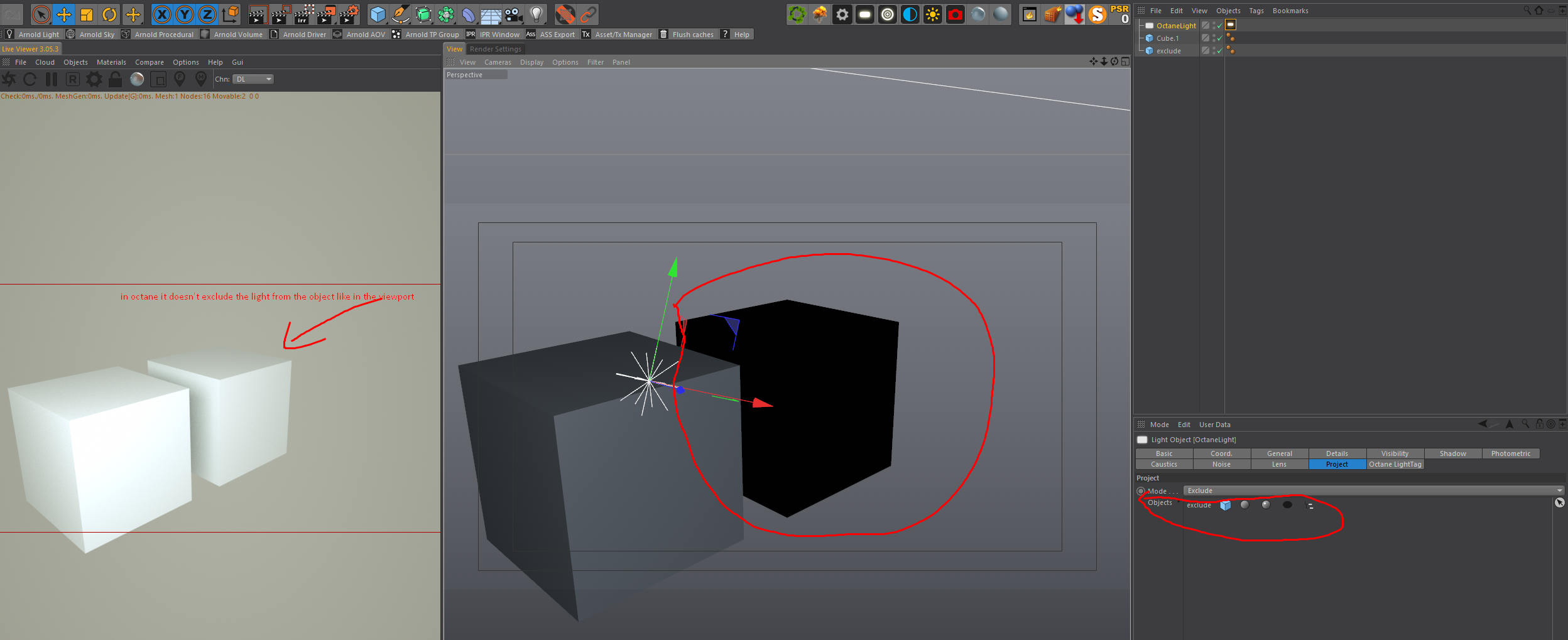 Octane for C4D exclude light from objects