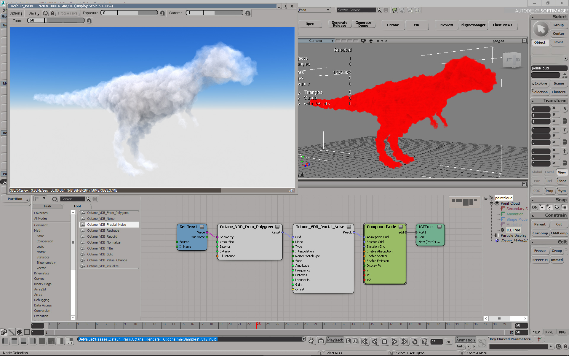Now i will try to fill the Octane node with the VDB grid data.