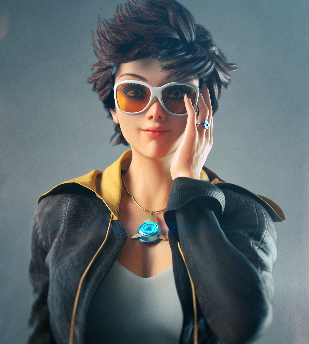 I've been playing around in Daz and getting a better handle on building a skin shader in Octane. I decided to start building some fanarts for Overwatch characters since those are really well designed. Most of the stuff is from Daz. A few items were modeled from scratch in Houdini, namely, the pendant, the ring on Tracer and the small logo on Widowmaker's glasses. All materials and lighting is done from scratch in Octane.