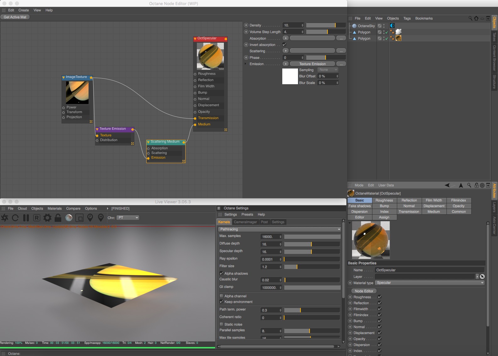 Ok, here is the specular emission example: