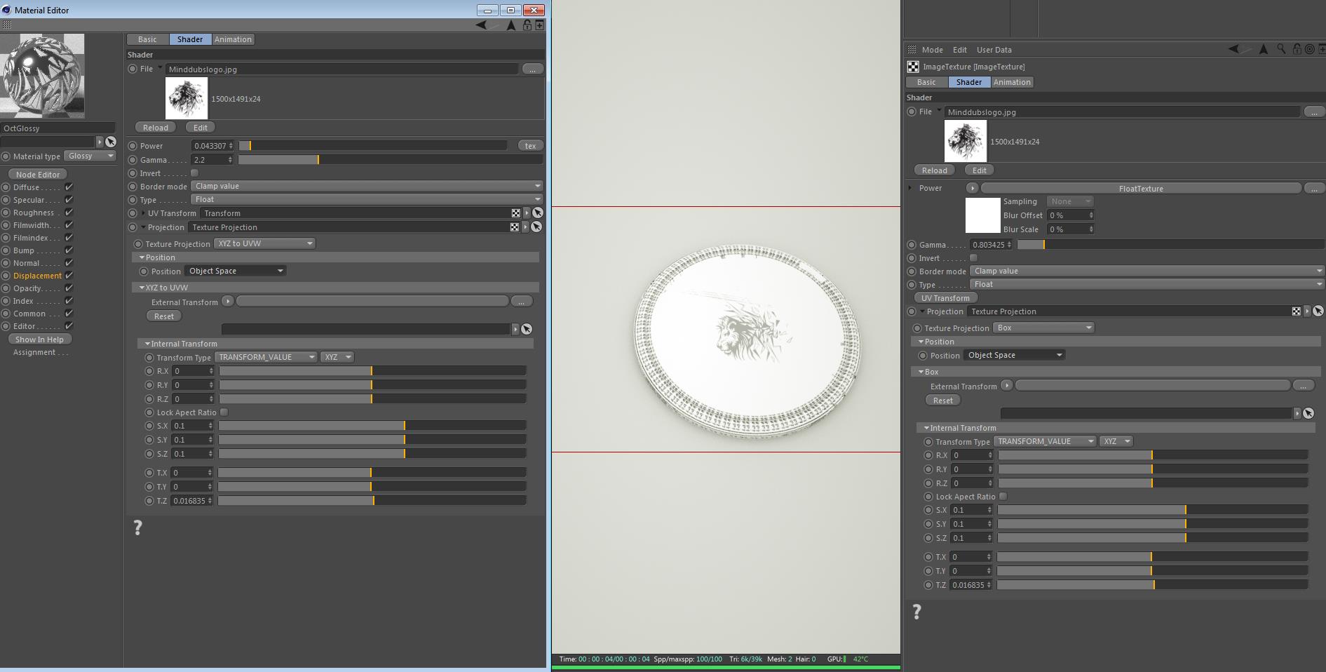 It does for some reason do the one image on top of the surface in bump, but that's not enough for me, I would love to get some displacement going and build this weird thing into a reel tin.