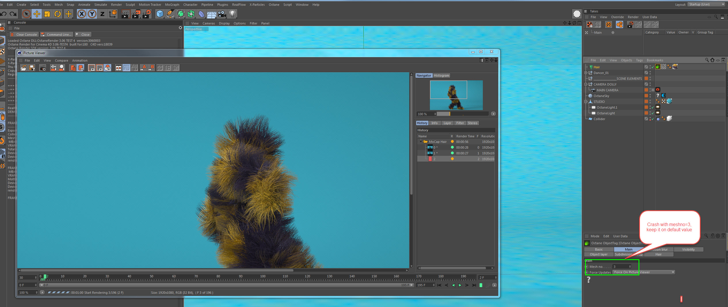 Ok found the reason see picture. It's not fixable soon. Keep to use it as in notes. And you don't need to put object tag for hairs by default.aoktar wrote:Thanks! It's crashing on me too. I'll investigate and let you know result.