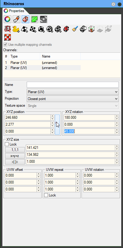 there are two channels(surface and planar) visible in the object properties. (planar is 45° rotated so that channel should render visually differently when using stripes,squares and such)