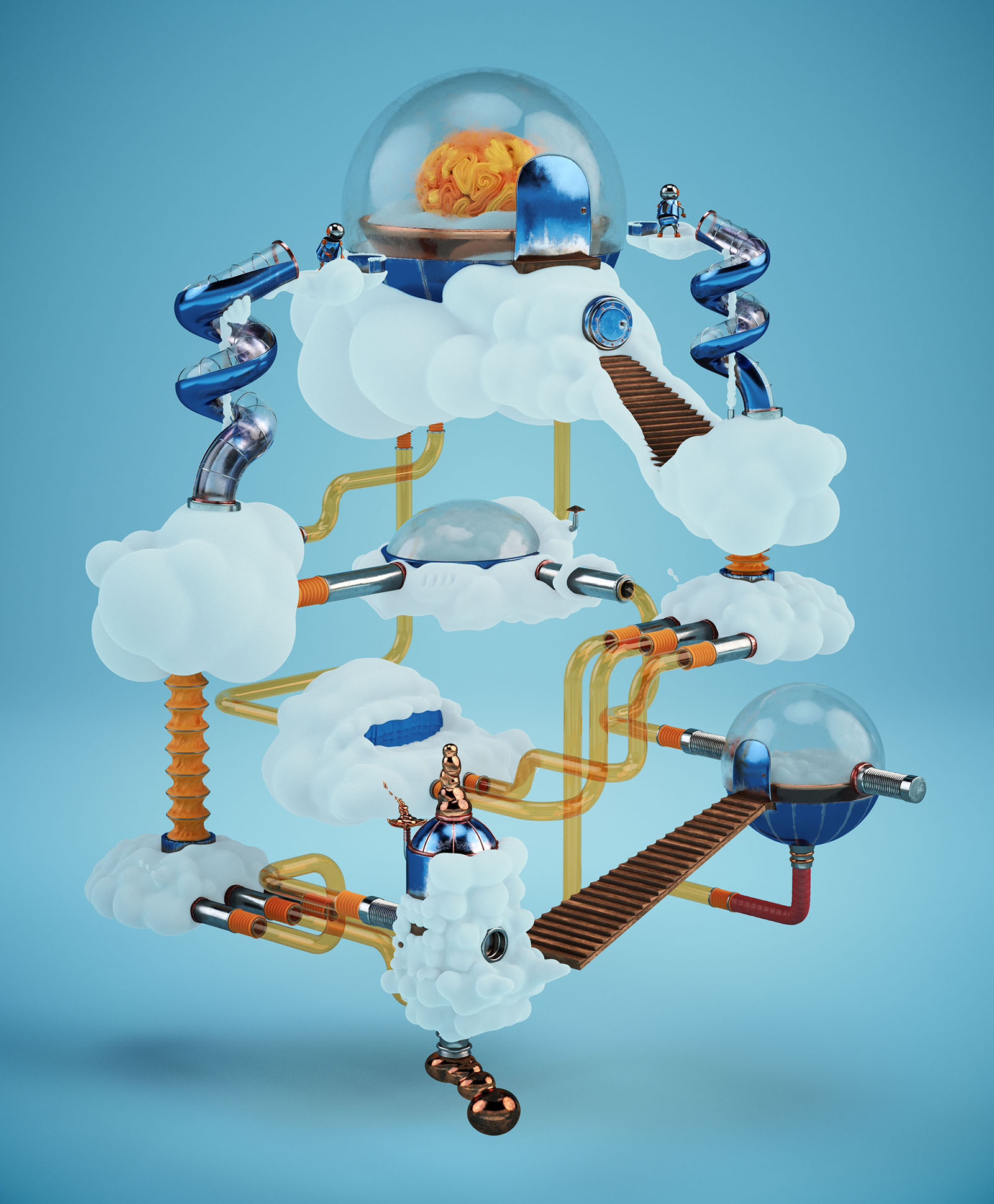 I wanted to represent the creative process with some 3d machinery, and found a good way to implement substance painter with Octane Render.