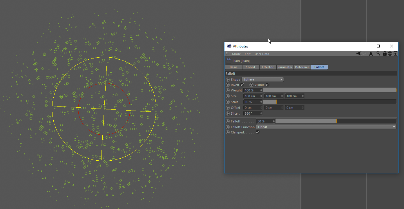 In this case the falloff exceeds the radius of the sphere falloff no matter how my effector is sett up.