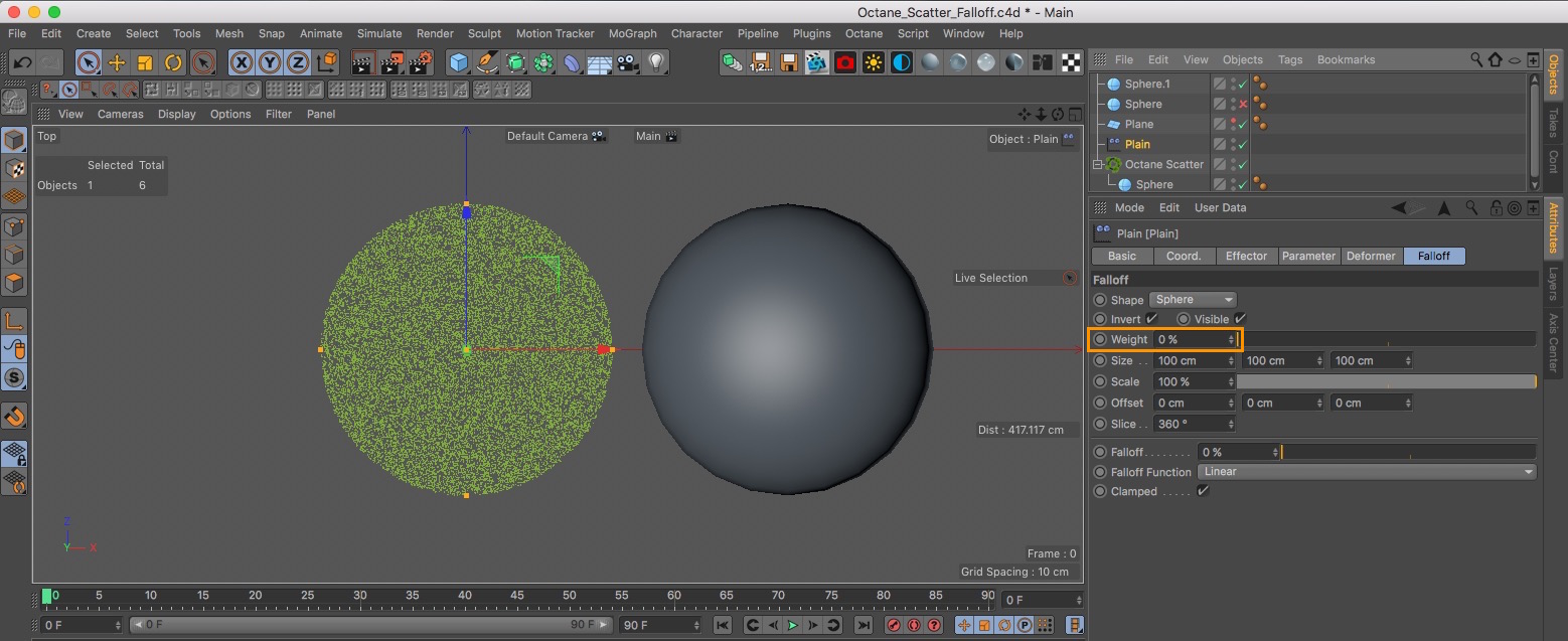 Scatter Object with Falloff effector