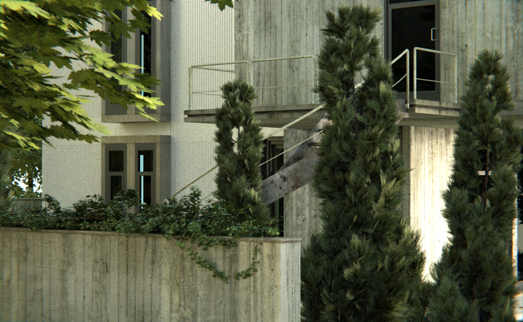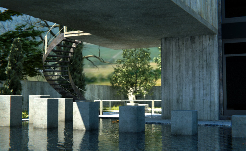 After the interior series here are some exterior shots of my last project. I used both directlighting and pathtracing, the rendering time varies from 30min to 3h30 in 1300 px (then reduced to 1024). The lighting was mainly hdr. I was quite surprised by what I could put in 896Mb, the scene has lot of trees and some geometric grass, main grass is made with plane and alpha image.