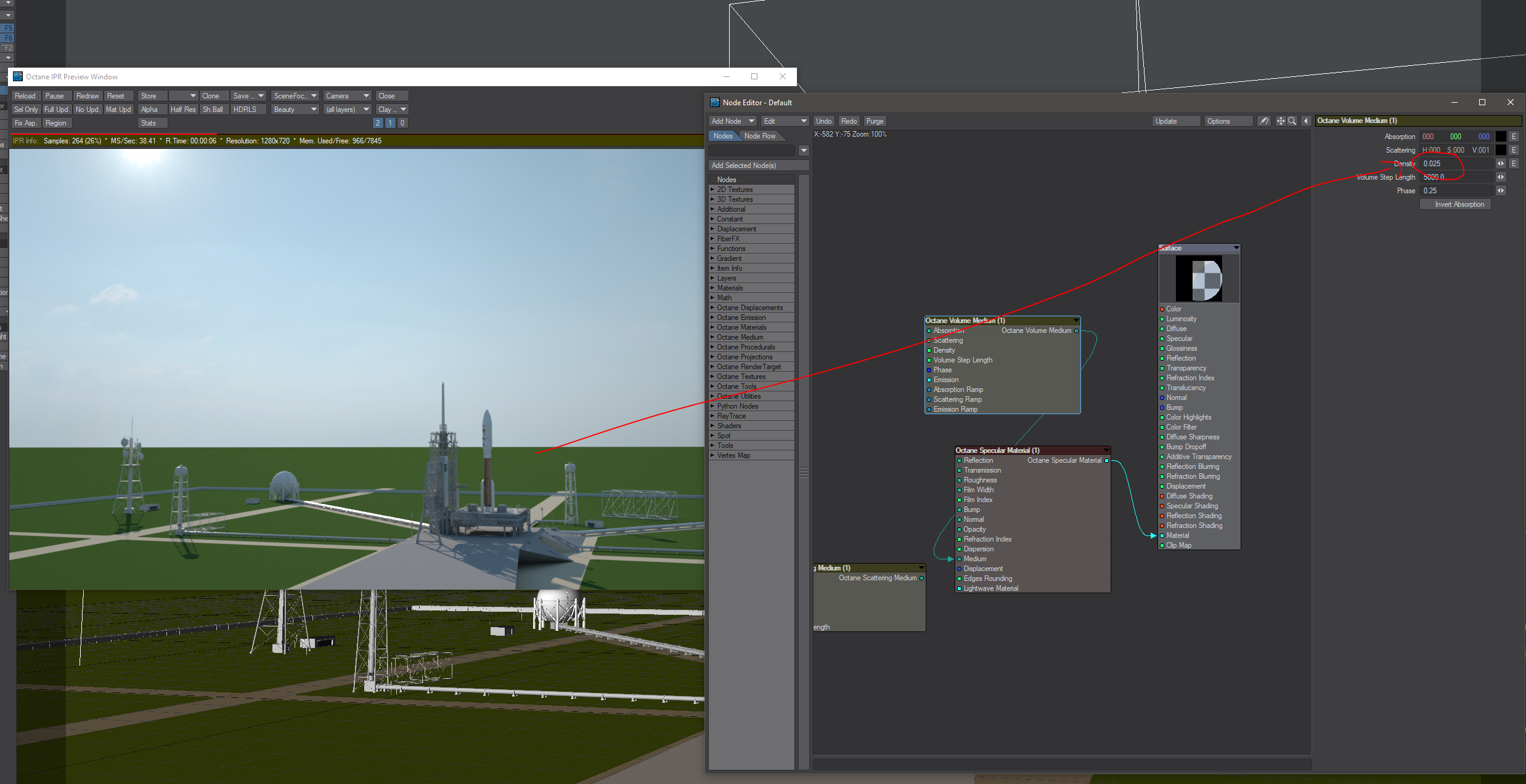 Octane and large Haze effects are difficult to achieve. I have tried different techniques. This technique is using a large cube with scattering which looks ok its just too thick........when fine tuning the density value, it goes from too thick to completely vanishing, with nothing in between....