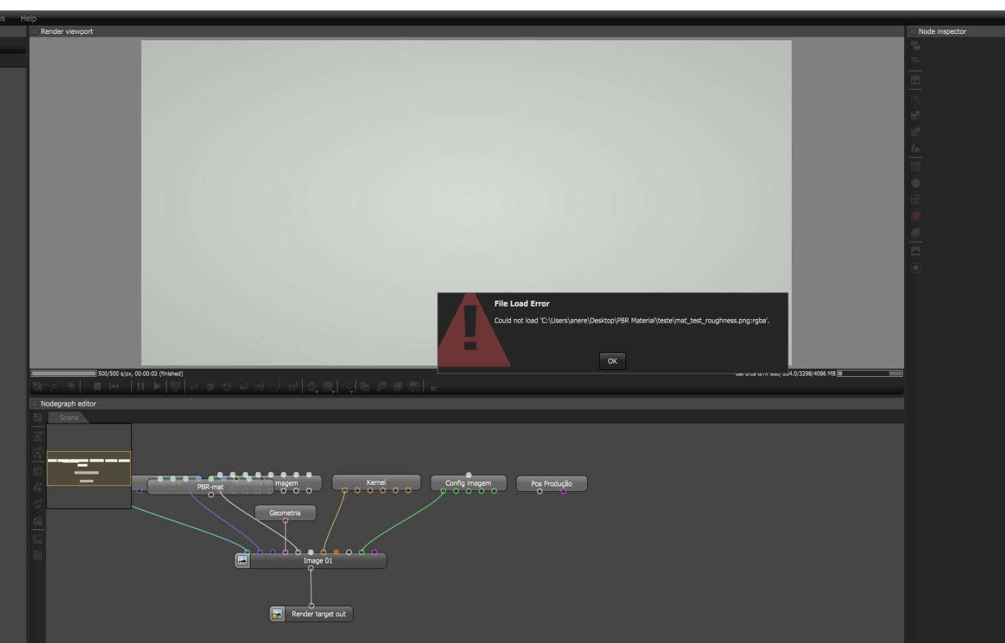 But when i load the first map, right after "ok" i receiving a messsage that the "_roughness" cannot me loaded. I´ve attached the print for the error and created the same material in different ways to see if the map is generated with any problem, but after change some configs in map doesn´t work at all.