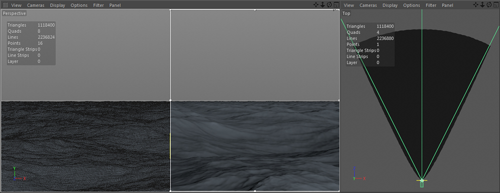 Procedural setup. Constant 1 million triangles, regardless of the camera angle. Equal amount of detail everywhere.