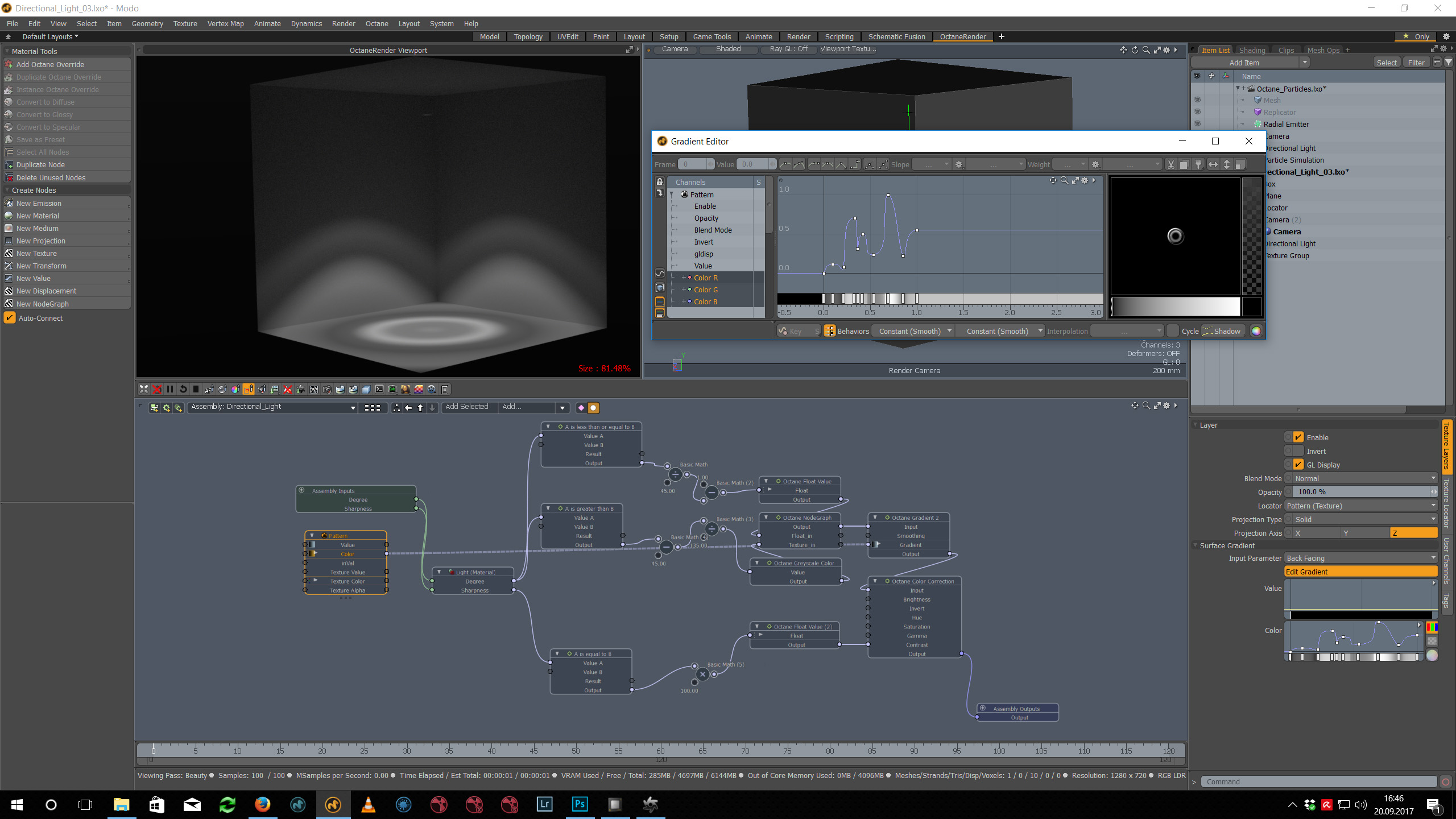 I understand that a gradient cannot be plugged into an Assembly in Modo, so what you are trying to do may not work.