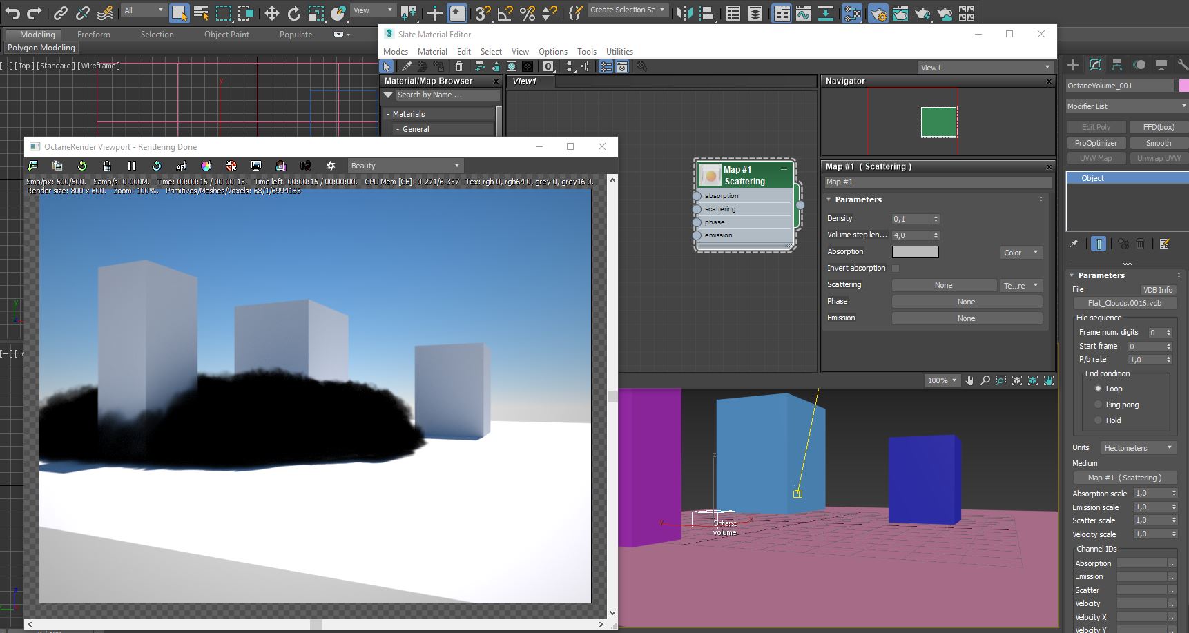 I'm having some troubles setting up a volume with a proper look. I'm using the medium slot in the OctaneVolume but have no effect on it. I've attached an image with the setup.