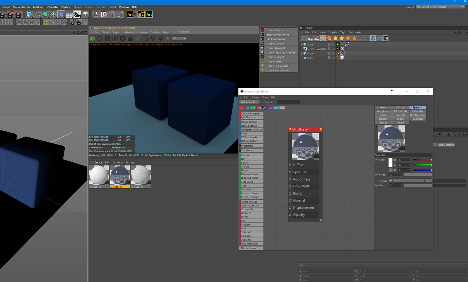 I'm just starting out in octane and I'm having some issues with it. No reflections are showing up when i create a basic, default glossy material. I noticed that the specular color default to black. But pushing that to white doesnt do anything. I'm tearing my hair out over this. Am i missing something?