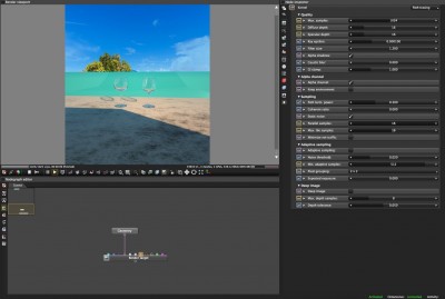Let’s take this example scene: If the Background option is used, it is necessary to enable the Alpha channel option in the Kernel settings, but the Background image is not taken into consideration in reflection and refraction: With the VisibleBackground Lua scripted graph node, you need to assign a reference camera (by copy pasting the camera node, or connecting the camera expanded from the Render Target), and the image to be displayed as RGB Image texture node. In this way, the projection and uv transform node of the image will be adapted to perfectly feat to the frame buffer, taking count of the camera FOV and Shift value: It is possible to enable/disable backplate, reflection, refractions: