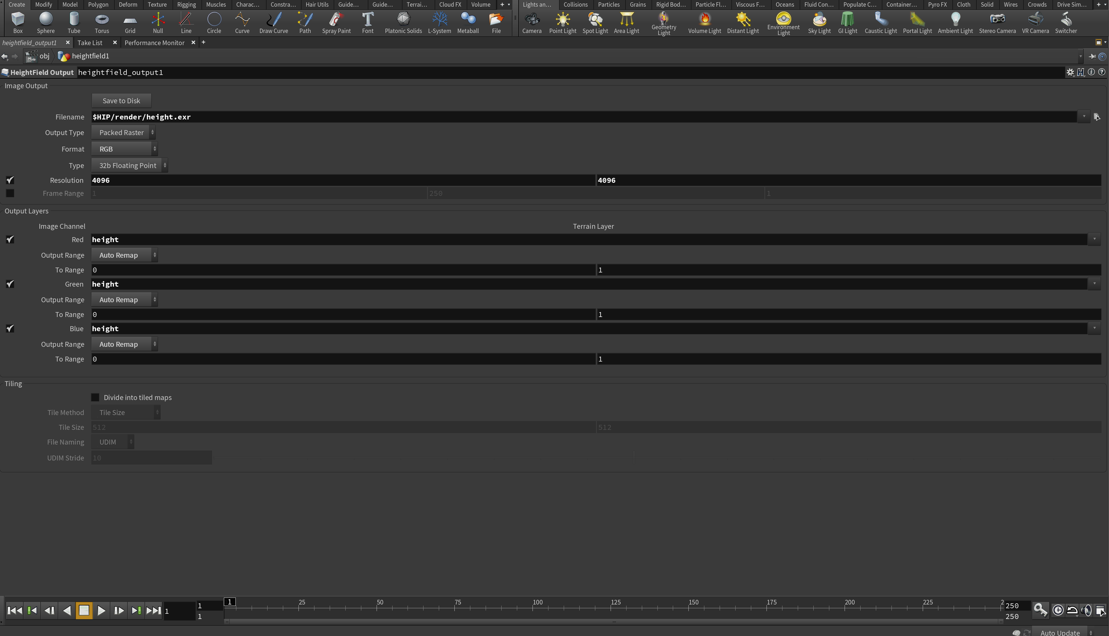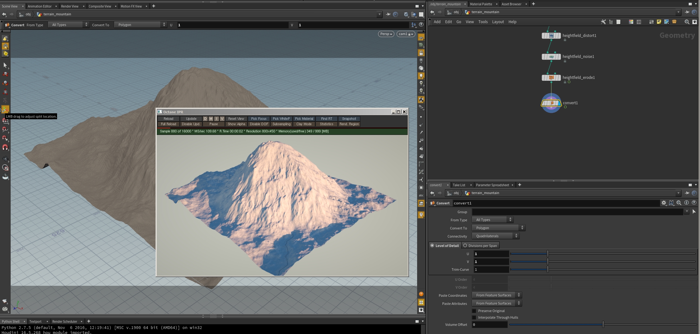 Also, remember that you could render the Houdini mountain objects adding a Convert SOP to convert it to a mesh object.