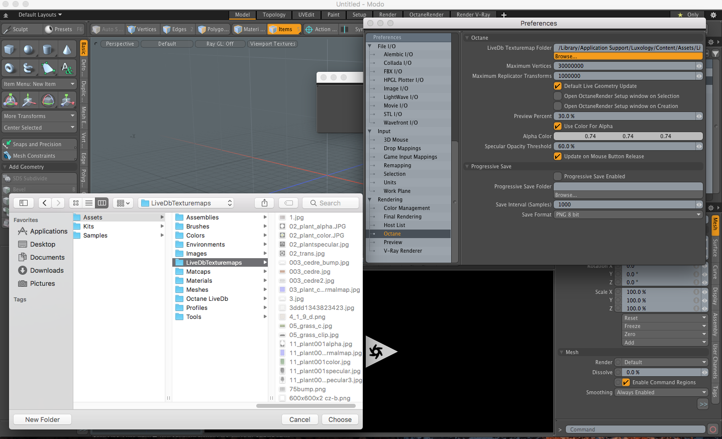 The LiveDb is best accessed by loading a LiveDb texturemap in Octane Standalone, then Ctrl-C to copy the node, then paste into a NodeGraph node in OctaneRender for Modo. The old method of having the LiveDb textures as Modo Presets did not work well.