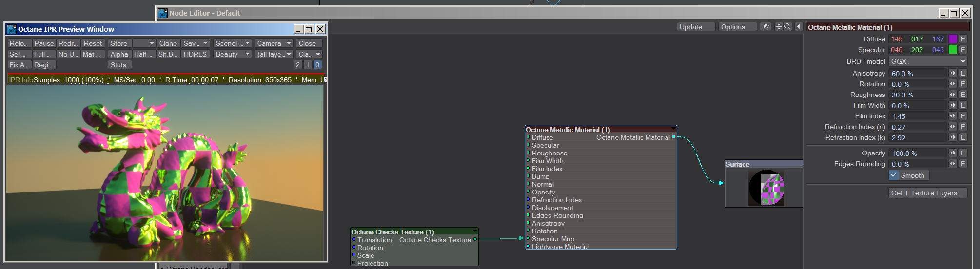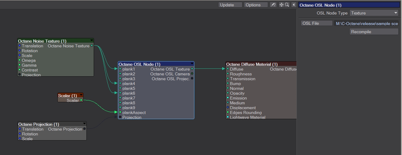 - OSL node. Texture, Camera and Projection node types. Parameters supported using LightWave/Octane node input pins.