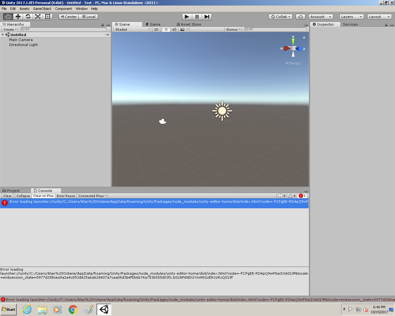 Edit: I have read the docs on unity.octane.com but no real help there. If I try to login with the Octane account the above happens. If I try to login with my Unity account nothing happens and I get the following error message in the console: