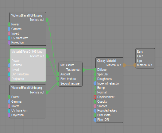 As an added bonus, you can mix and match the make up textures you put in the RGBA node and the RGB node, not all combinations work, but a lot of the time an alpha channel of one make up image will work with the colour channels of another make up image, just try them out and you can get a few extra styles.
