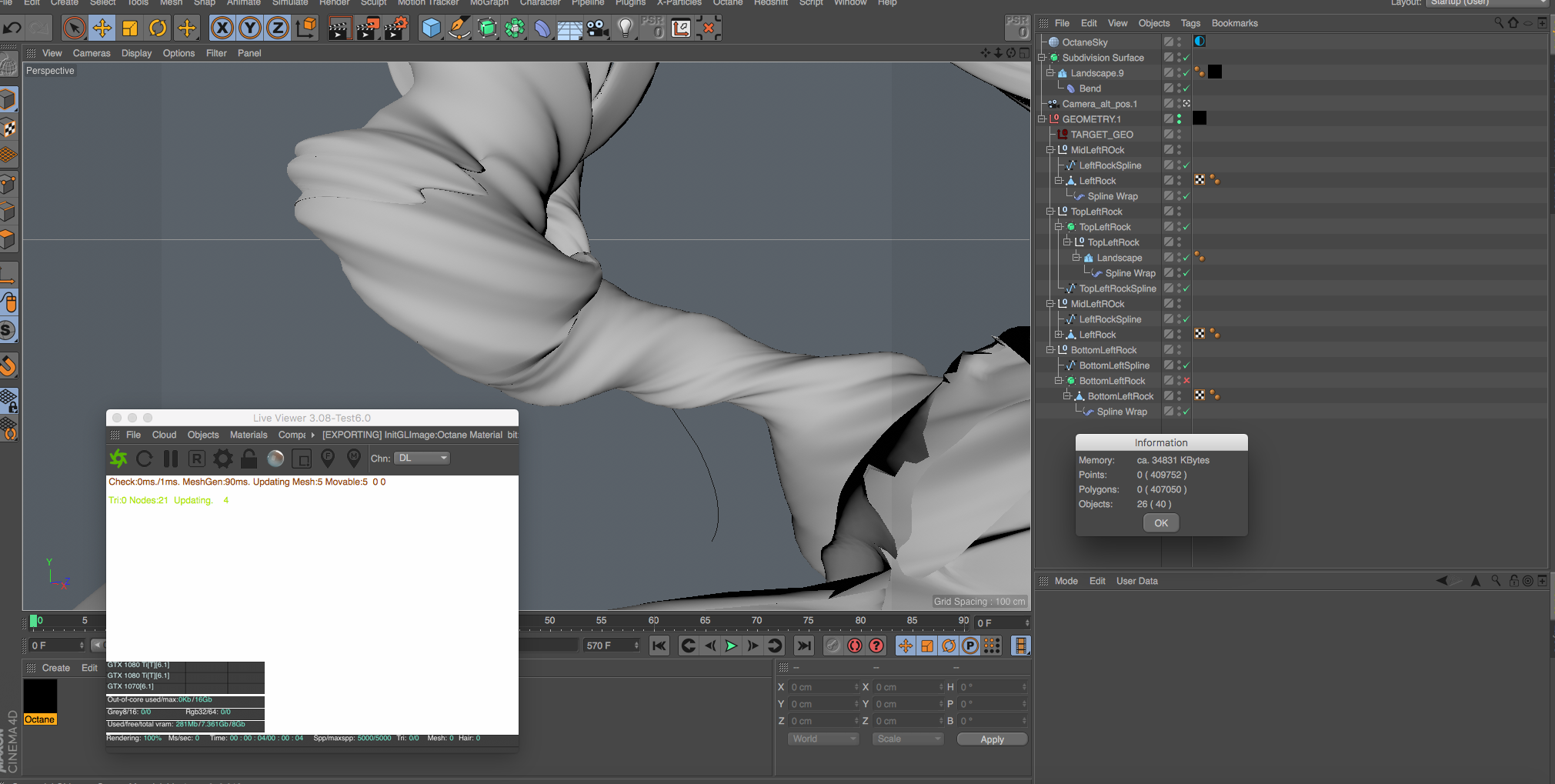 Remove or decrease subdivision for subdivision surface. "Updating" means plugin is waiting geometry process from Octane API. And RS is faster for geometry voxelation operation. I'll have to move this BUG report because it's not a bug. Please see this post also: viewtopic.php?f=30&t=65321#p330970
