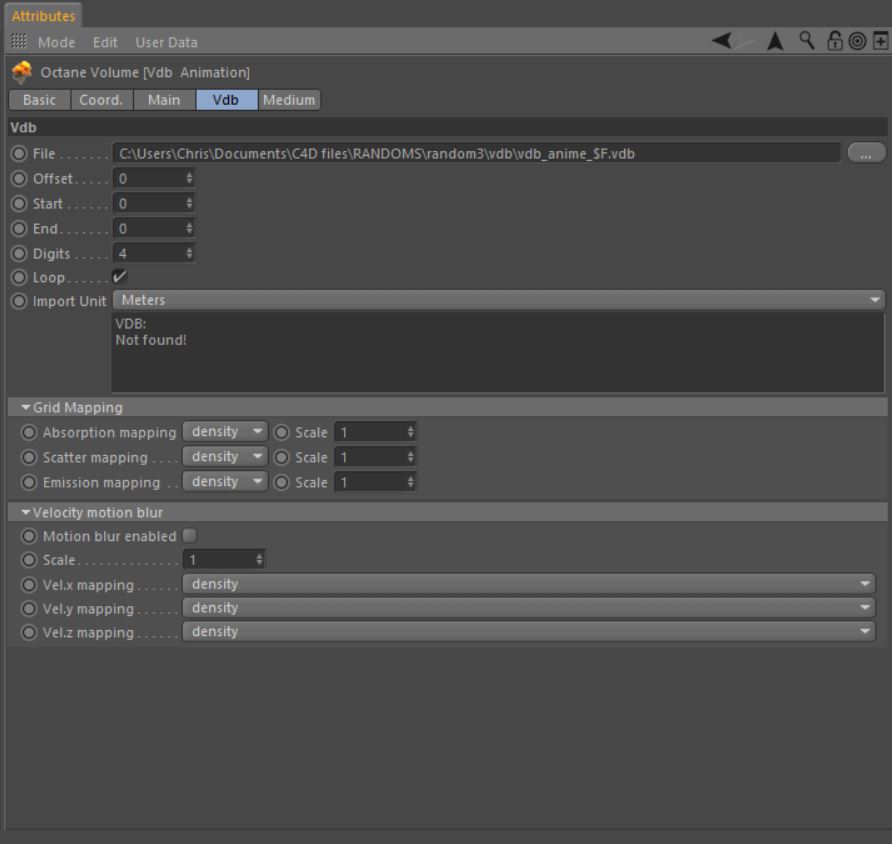 Volume object/Mode: VDB Loader