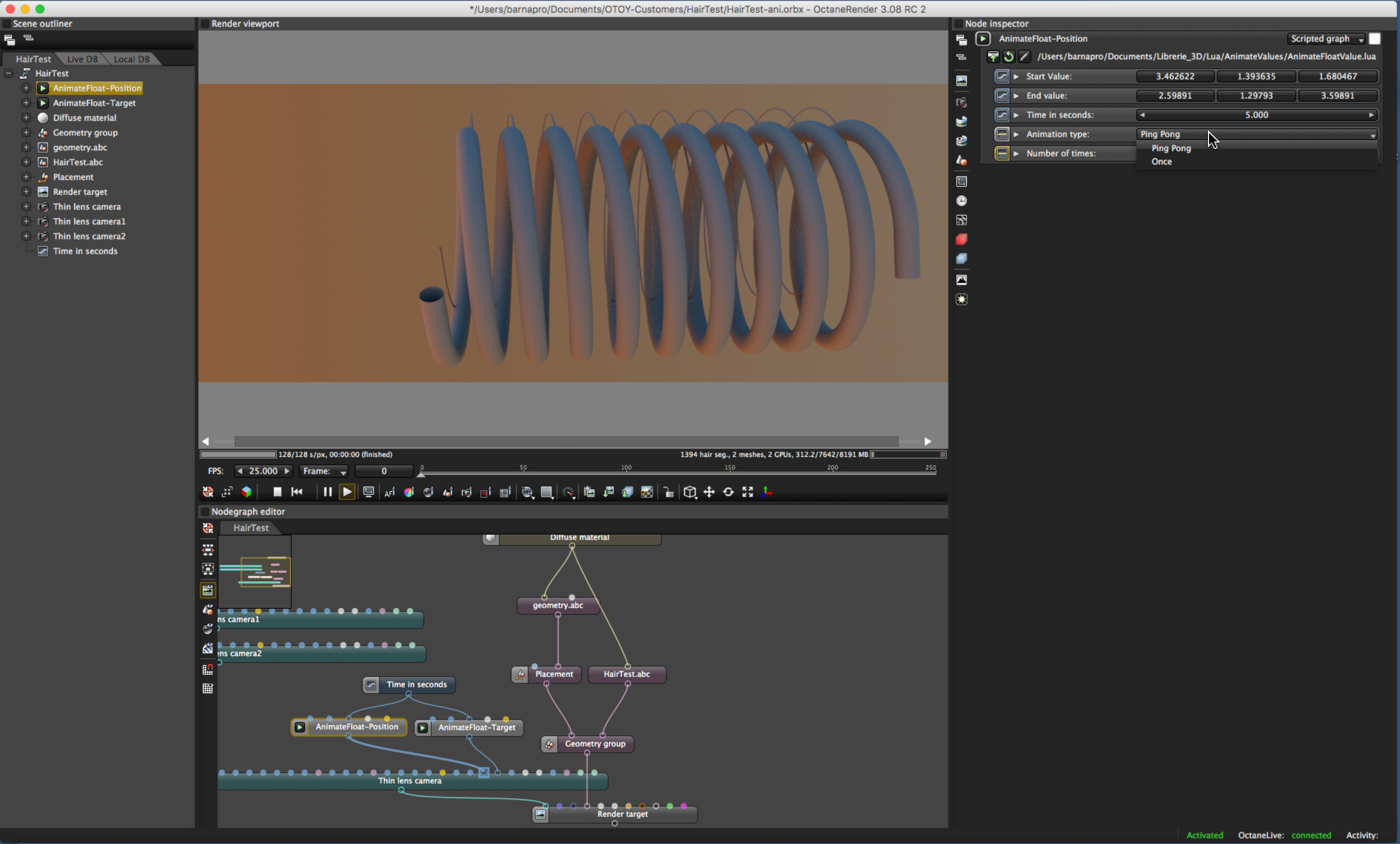 No issues. Do you know/ recommend any add on or plug in which could add this functionality to Octane? I am importing mesh geometry from two different modelling applications. Essentially Octane Standalone is my studio where I integrate assets for the whole scene and render. This works perfectly for still images but I need a solution to render walk-through animations.
