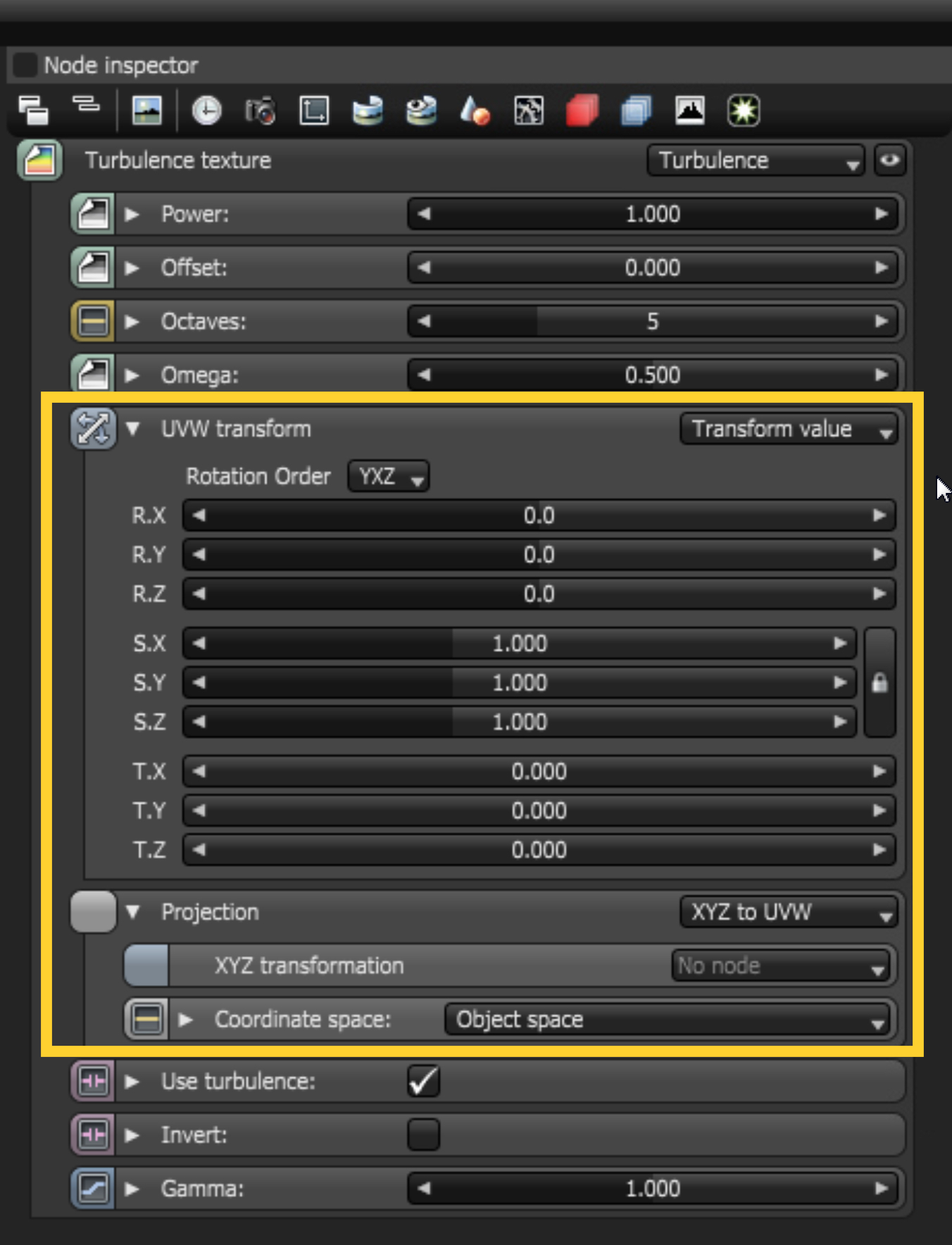 The Projection node is used to completely change the projection assigned in c4d, and has its own transformation parameters.