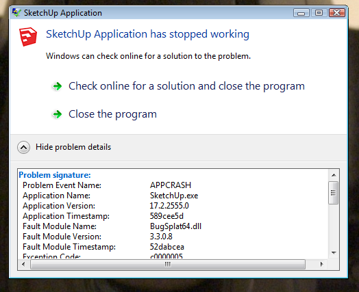 - SketchUp version (e.g. SketchUp Pro 2017 version 17.2.2555 64-bit)