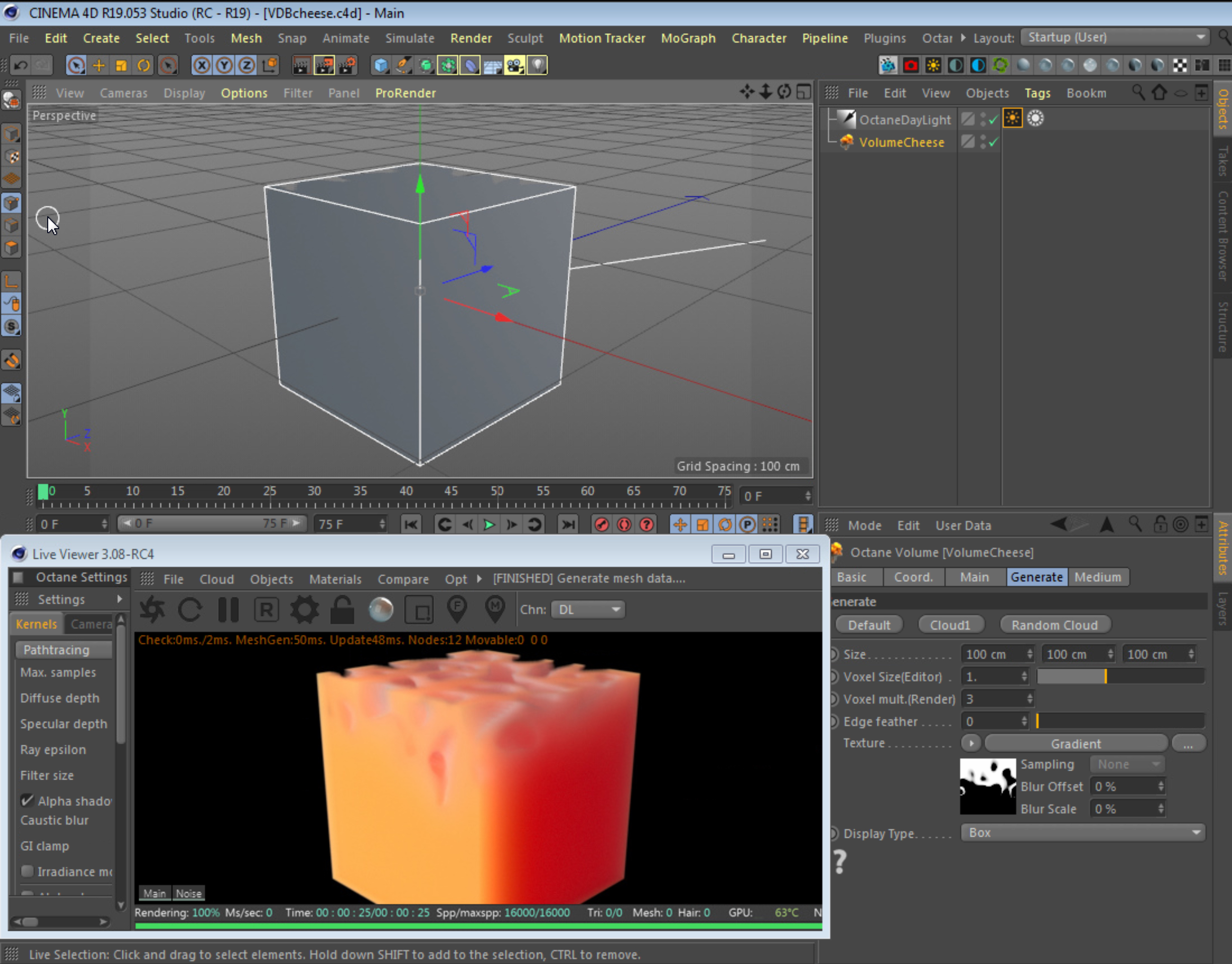 Is it possible to feed a noise texture into the "Scattering" input of the "Scaterring Medium" tag? I was hoping to create something like the attached image but with different shapes. I can achieve something similar in Cycles4D but can't seem to get it working in Octane. Any ideas?