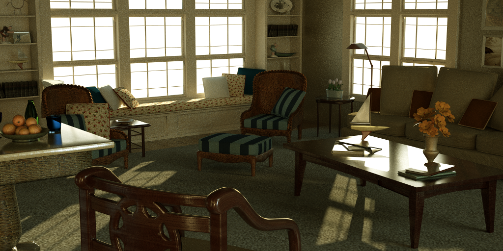 The crux of the matter is that I am working on a scene, an interior which is lit through the windows in the image. I want to maintain the appearance of all natural lighting, but also use lights to give a more even illumination. When pathtracing is on it gets very dark in some places, no matter the preview kernal settings. I have added single polygon planes to the scene with a diffuse material, a texture emission, and an rgb spectrum node to control color. Is this a good way to do it? Is blackbody emission a better option? Is there a performance difference or is color temp the main advantage? The scene renders very slowly. But there is a lot of geometry and textures. Is my lighting effecting my render times adversely, or is that just the reality of pathtracing? Thanks for any help. I'll attach an image of the scene I'm talking about. It was 7 hours rendering with a gtx 470, at 4k, with pathtracing.